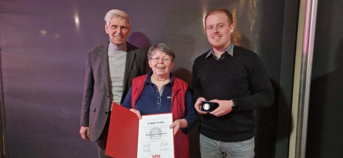 Gert Weisskirchen beschrieb, wie lange schon sich Marianne Kammer für die SPD in Wiesloch eingesetzt habe. Sie ist seit vielen Jahren die 1. Vorsitzende unseres Ortsvereins. Sie sei Herz und Kopf des Ortsvereins Baiertals. Immer sei sie da gewesen, wenn Menschen in Not waren und hatte geholfen oder Hilfe organisiert. Sie ist uns allen nicht nur als Mitbegründerin der Tafel Wiesloch bekannt, sondern auch als wichtige Ansprechpartnerin für die Bürger:innen in Baiertal und ganz Wiesloch. So werden wir alle den Jährlichen Flohmarkt, den Marianne Kammer zugunsten von Vereinen oder Bedürftigen auf der Kerwe in Baiertal organisiert hat, vermissen.